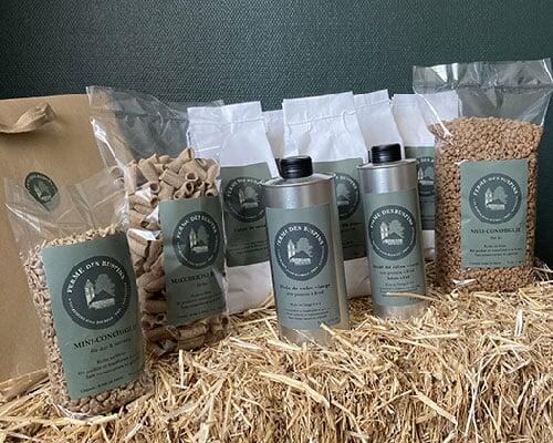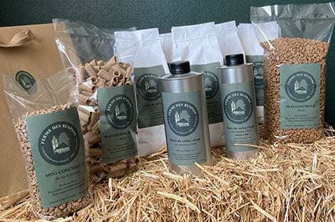- Pâtes au blé dur : Nous transformons notre blé dur en farine complète et en semoule fine pour les transformer en pâtes traditionnelles au bon goût de blé et fermes. Pour varier vos plats, nous vous proposons des pâtes au blé dur et sarrasin ainsi que des pâtes au piment d’Espelette.