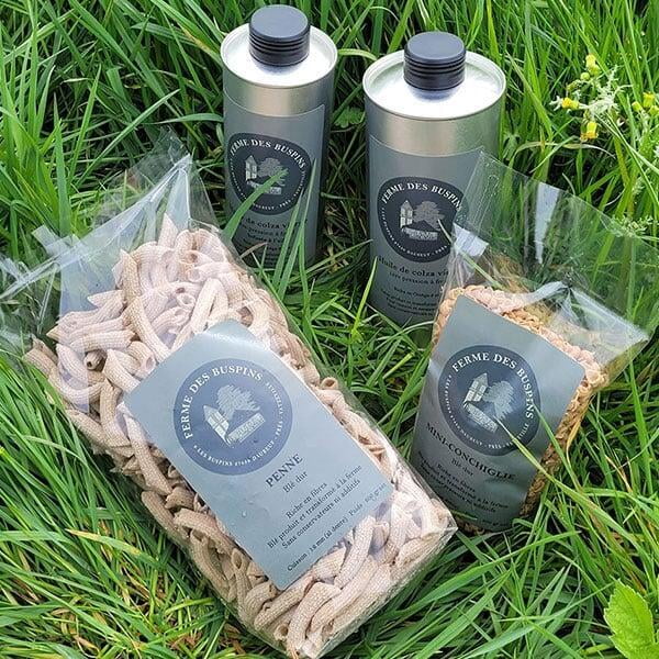 Pour vos évènements ou cadeaux de fin d’année, la Ferme des Buspins vous propose des coffrets garnis avec les produits de votre choix (pâtes, huiles de colza vierge, farines...).